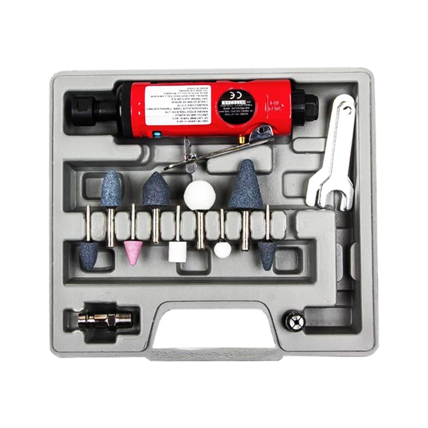 Gav At-7033 Havali Kalipçi Taşlama Set; Set İçerisinde 15 Parça Bulunmaktadır.; Pens Çapı 6 Mm (3mm*); Uzunluk 170 Mm; Boşta Devir 22.000 Rpm; Hortum Ölçüsü 8 Mm; Hava Tüketimi 180 Lt/Dk; Çalışma Basıncı 6,3-8,0 Atü; Hava Giriş Nipeli 1/4″; Ağırlık 0,70 Kg